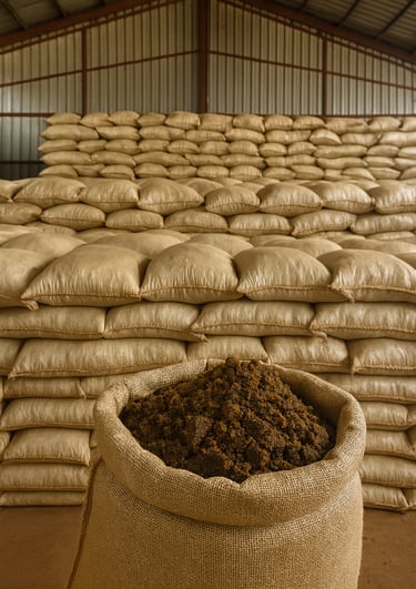 Stock de tourteau d'aliment bétail prêt pour exportation ou expédition dans les zones d'élevage